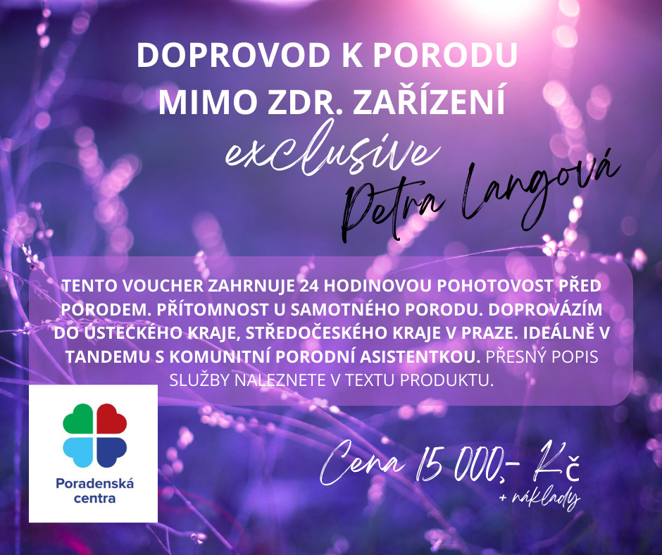 - doprovod do porodnice, pokud bude třeba a vše s tím spojené. Součástí doprovodu je úprava Informovaných souhlasů, podepisování negativních reversů, komunikace s personálem, chránění rodičky před nevhodným chováním personálu, manipulací, zásahům proti vůli ve stavu, který není akutní ve smyslu komplikací. Doprovázím s Plnou mocí, abych mohla účinně hájit Vaše práva a intimitu porodu.