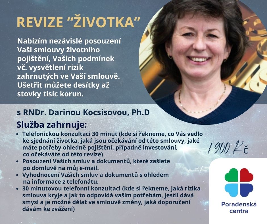 Znám životní pojištění od r. 1993 velice zblízka. Nejprve jsem ho studovala na Matematicko-fyzikální fakultě. Pak jsem pracovala skoro 20 let v různých odborných a manažerských pozicích v několika významných pojišťovnách. Později jsem si udělala odbornou zkoušky podle zákona č. 170/2018 Sb., o distribuci pojištění a zajištění  pro VŠECHNY KATEGORIE pojištění k vykonávání zprostředkování životního pojištění. A pak jsem dospěla k závěru, že se nechci podílet na tom procesu „vystrašit klienta k smrti, aby si začal platit drahé pojištění.“