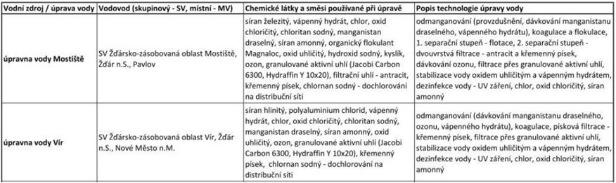 Zde je ukázka informací poskytnutých vodárnou na jejich stránkách: